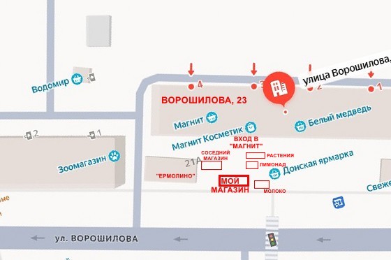 Наш магазин находится по адресу: Ростовская область, г. Каменск-Шахтинский, ул. Ворошилова, остановка "Центральный Рынок", торговый павильон в южном направлении от дома 23 (прямо напротив входа в супермаркет "Магнит").