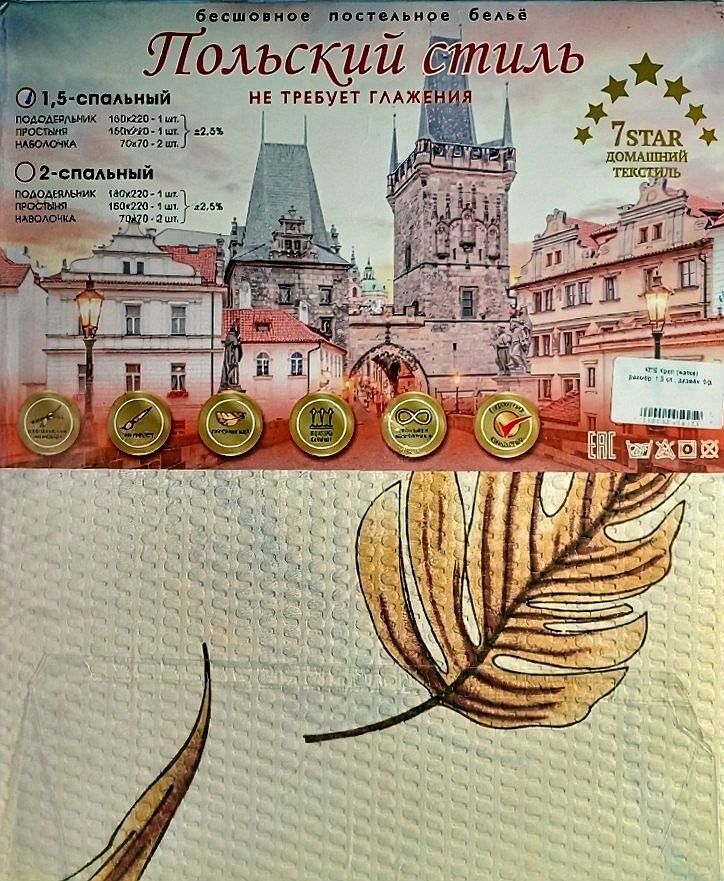 Комплект полуторного (1,5 спальный) бесшовного постельного белья «7 Star Домашний Текстиль» КРЕП ЖАТКА «Польский Стиль». Бельё приятное на ощупь и комфортное к телу.