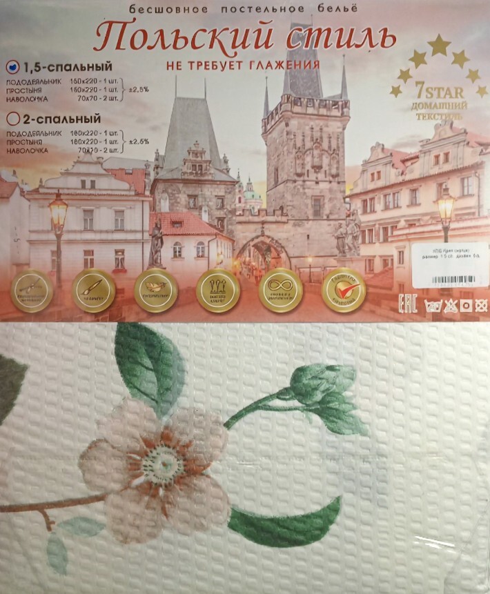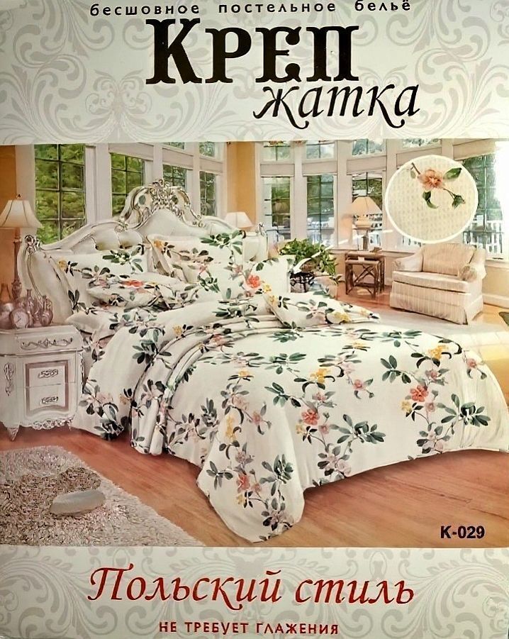 Комплект полуторного (1,5 спальный) бесшовного постельного белья «7 Star Домашний Текстиль» КРЕП ЖАТКА «Польский Стиль». Бельё приятное на ощупь и комфортное к телу.