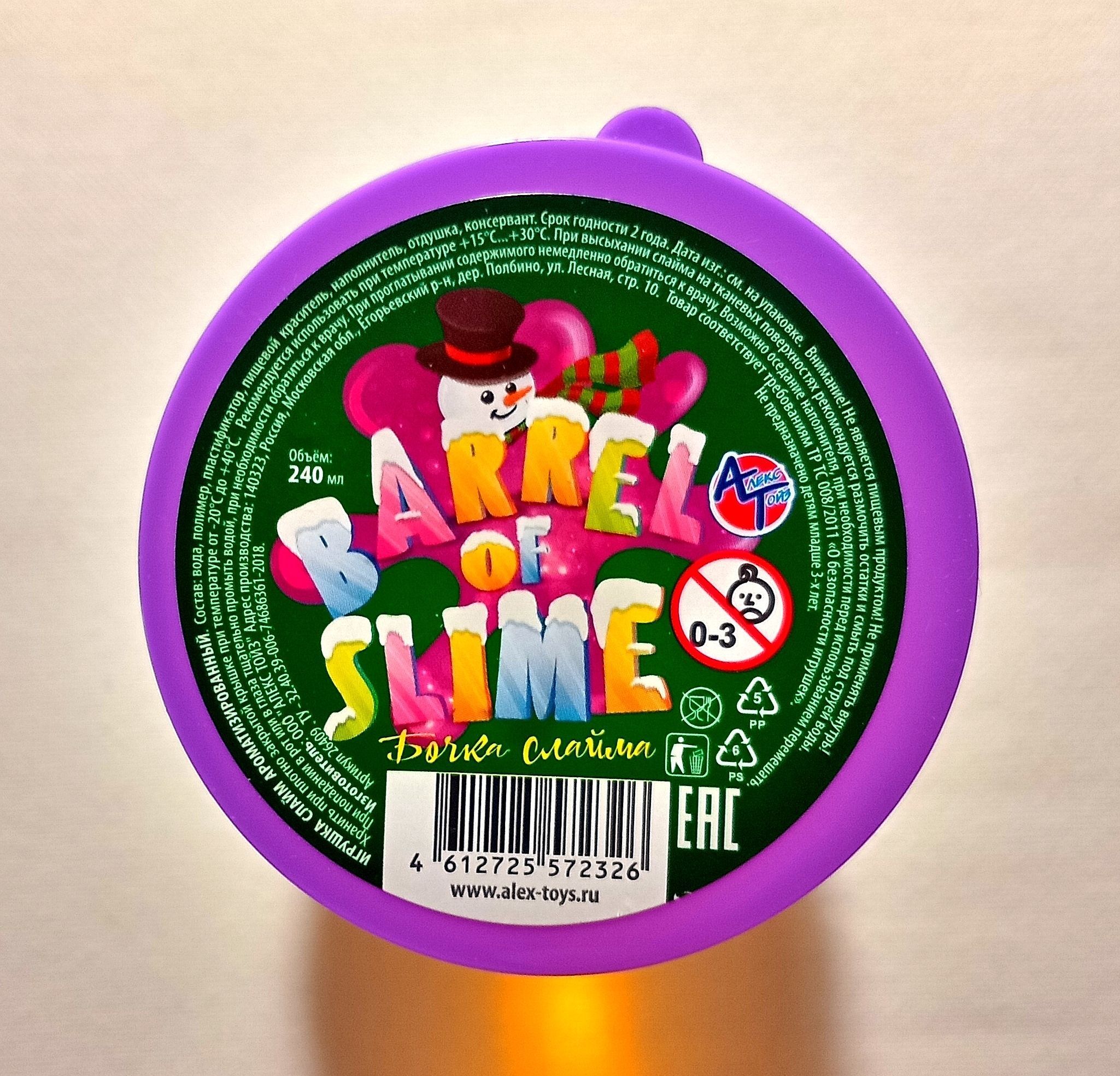 Бочка Слайма «Barrel of slime» - детская игрушка, с 3-х лет. Цвет оранжевый, фиолетово-зелёная крышка. Ёмкость: 240 мл.