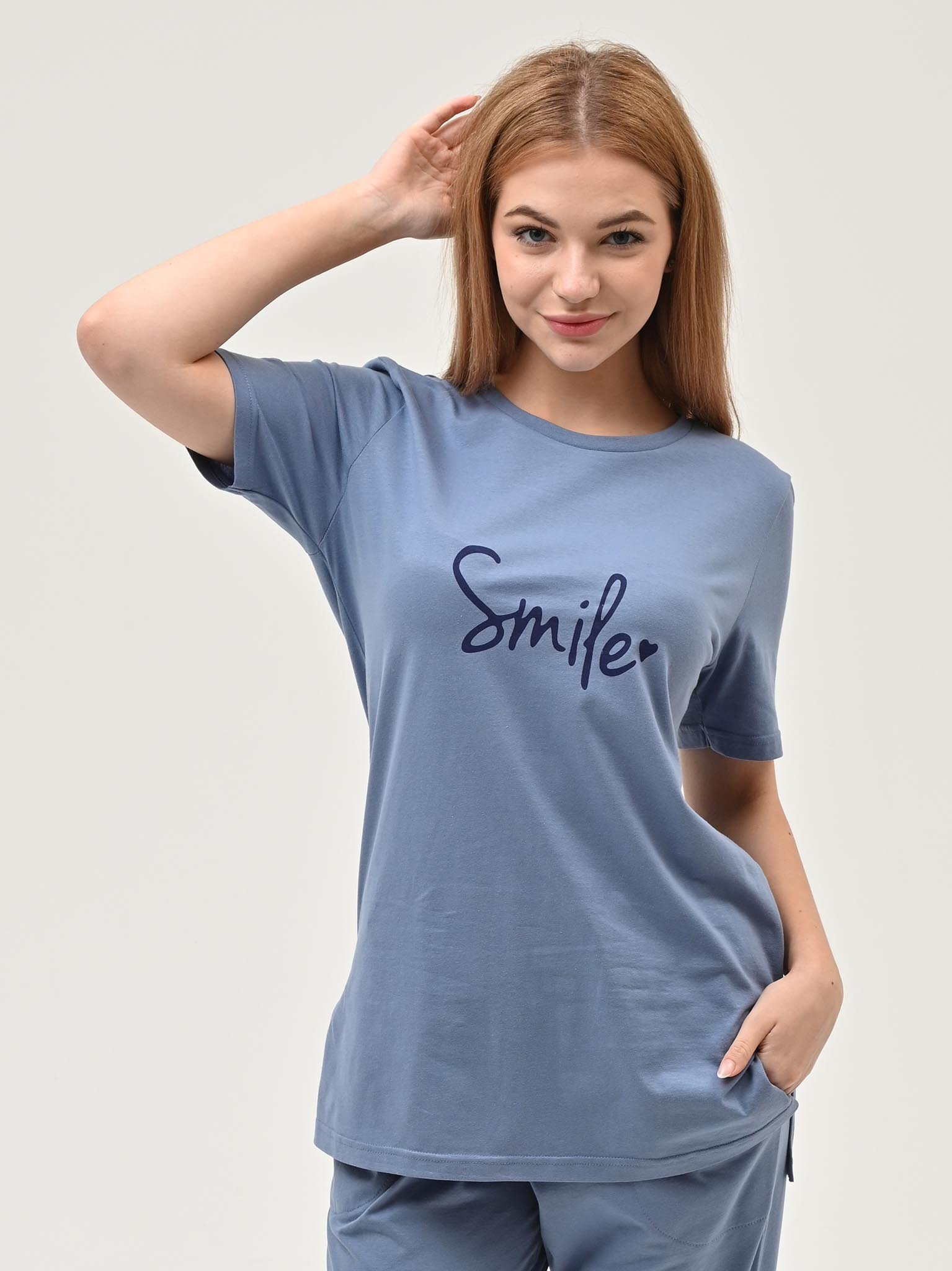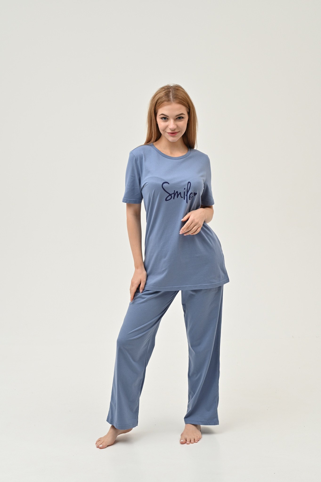 Представляем Вашему вниманию стильную женскую брючную пижаму прямого силуэта из мягкого трикотажа нежного голубого оттенка. Круглая горловина, втачные рукава и карманы в боковом шве придают ей комфорт и удобство. Разрез в боковом шве обеспечивает свободу движений и современный дизайн. Идеальный выбор для отдыха дома!