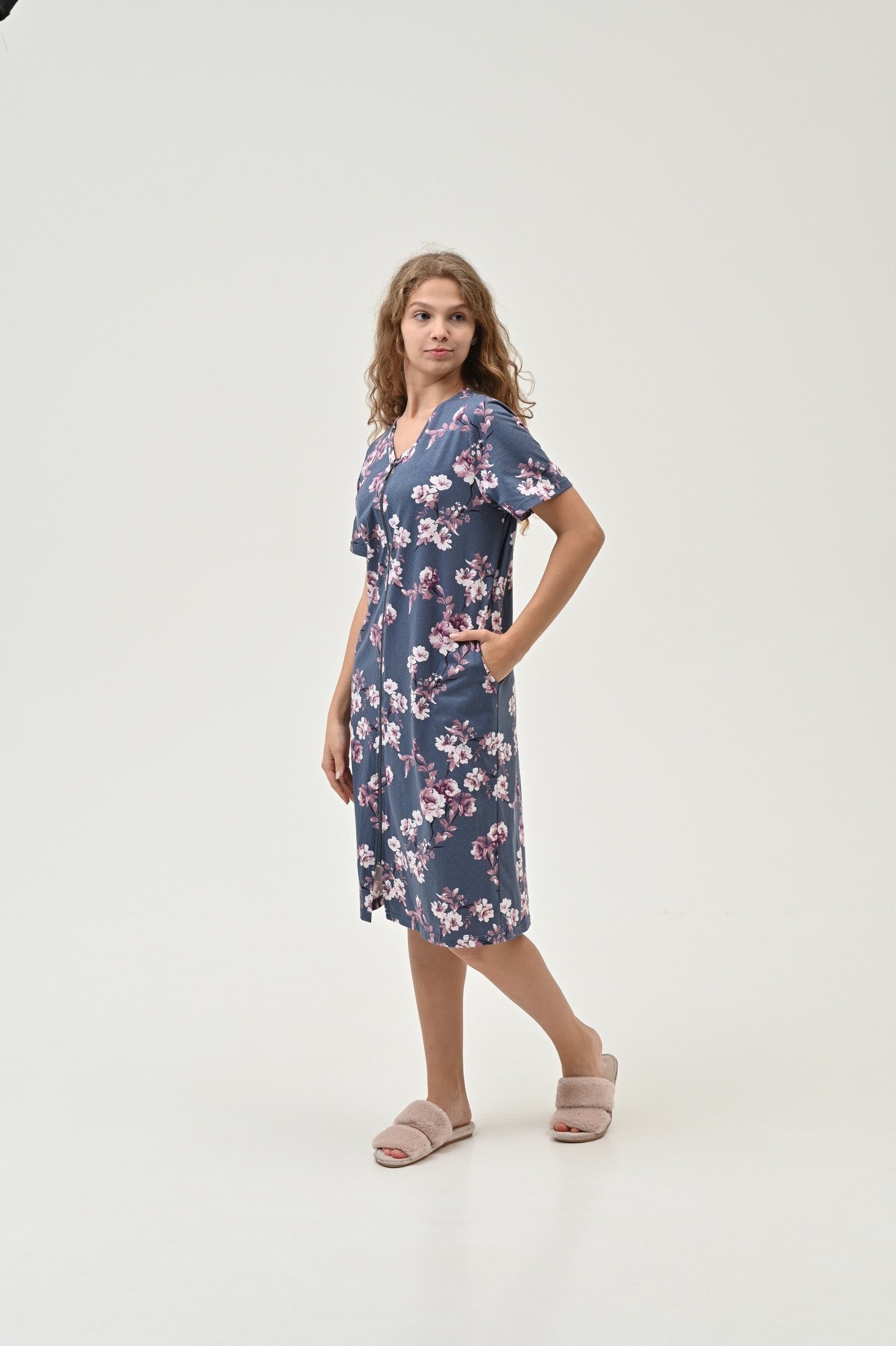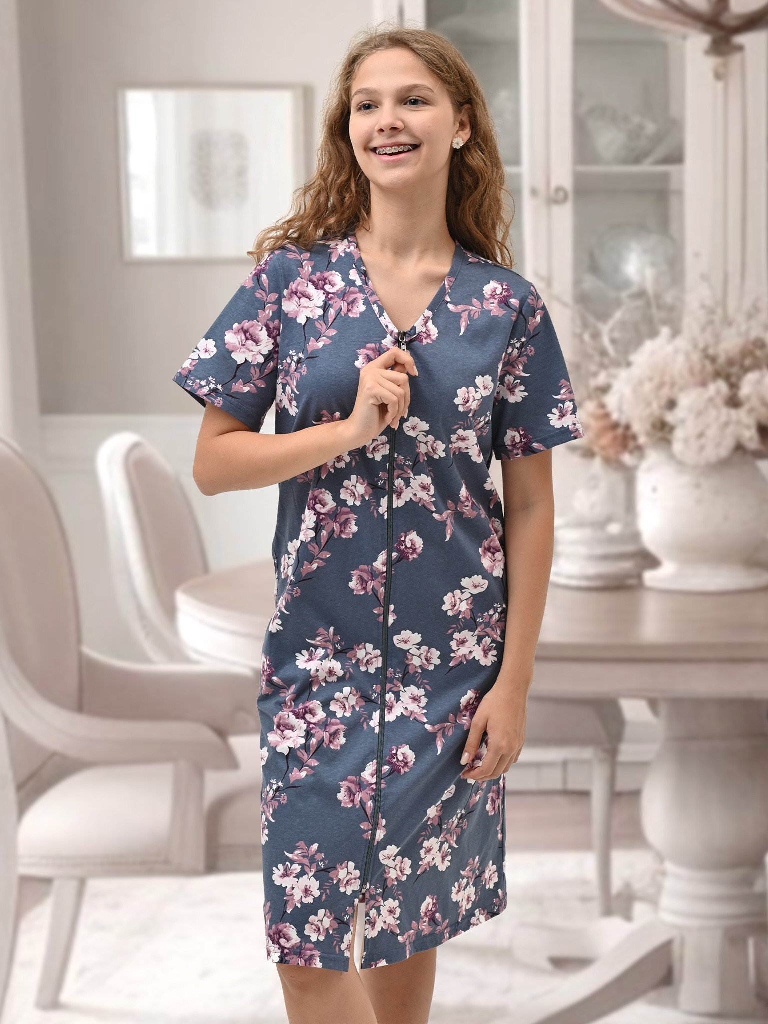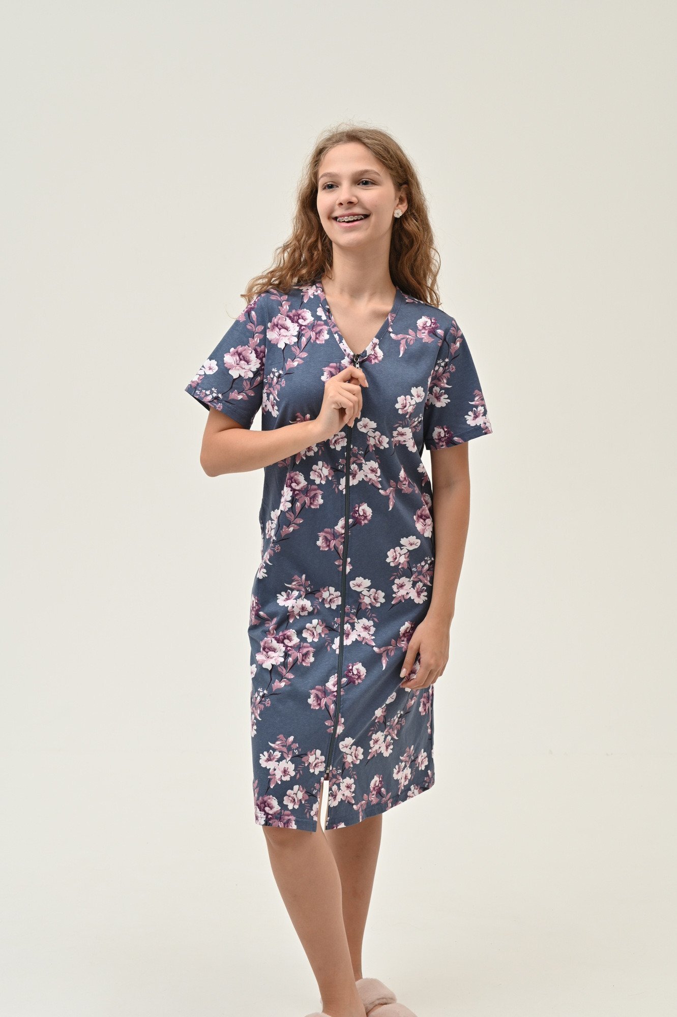 Погрузитесь в атмосферу комфорта и уюта вместе с женским халатом из мягкого трикотажа! Продуманная конструкция с молнией, v-образным вырезом подчеркнет Вашу индивидуальность и обеспечит свободу движений. Вдохновляющий цветочный рисунок!