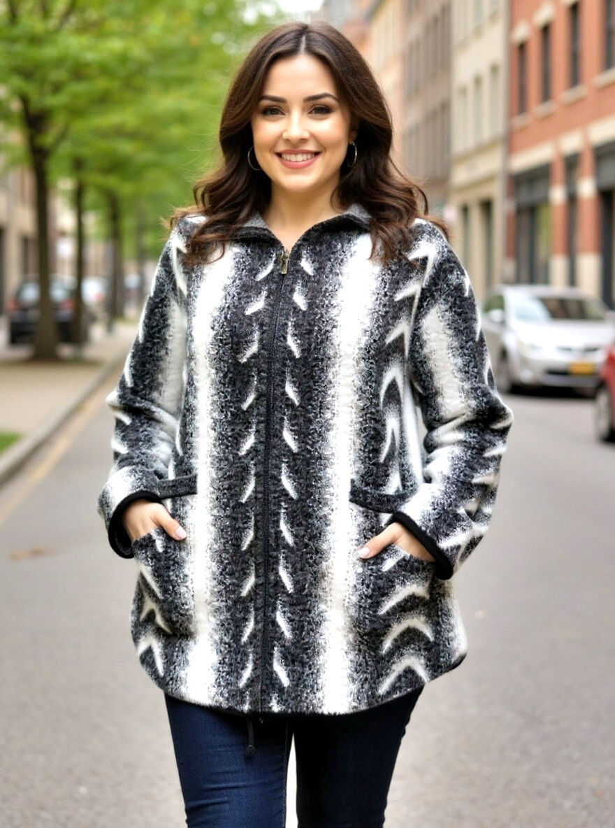 Погрузитесь в нежность и тепло женского кардигана из альпаки! Идеальный союз черного и белого цветов подчеркнет вашу индивидуальность. Длина модели (78 см) идеально дополнит любой образ, делая его завершенным и стильным. Кардиган подойдет на размеры от 60 до 68 благодаря универсальному крою. Молния застежки обеспечит комфорт при надевании, а наличие вместительных карманов подарит дополнительное удобство. Носите с удовольствием всю осень, зиму и весну!