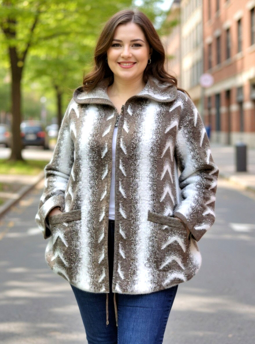 Погрузитесь в нежность и тепло кардигана из альпаки! Стильный универсальный оттенок коричневого в сочетании с белым подчеркнет вашу индивидуальность и станет идеальным дополнением к любому образу. Этот кардиган подойдет для прогулок осенью, согреет зимой и останется актуальным весной. Капюшон добавляет комфорта, а наличие молний и удобных карманов – практичности. Наслаждайтесь теплом и стилем вместе с нашим кардиганом из альпаки!