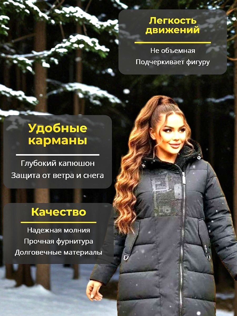 Погрузитесь в мир тепла и стиля этой зимней курткой! Элегантные вставки подчеркнут вашу индивидуальность, а комфортная носка подарит удовольствие. Неоспоримое преимущество модели — вместительные карманы для ваших ручек и нужных мелочей. Капюшон идеально дополнит образ, подарив уют даже в самые морозные дни. Идеальный выбор для зимних прогулок по городу! Эта очень стильная и тёплая женская зимняя куртка выдерживает температуру до минус 30 градусов.