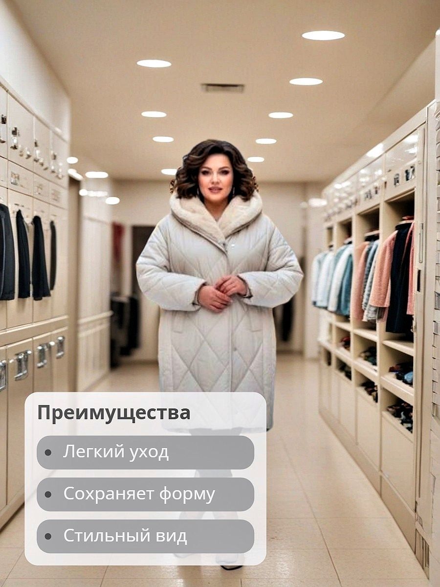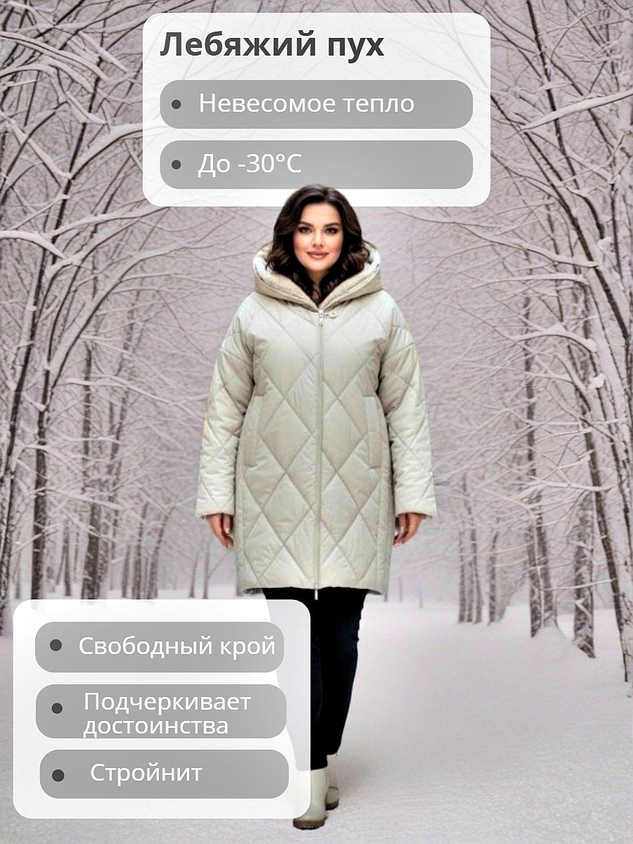 Высокое качество утепления: наполнитель из лебяжьего пуха обеспечивает максимальную защиту от холода даже в сильные морозы.