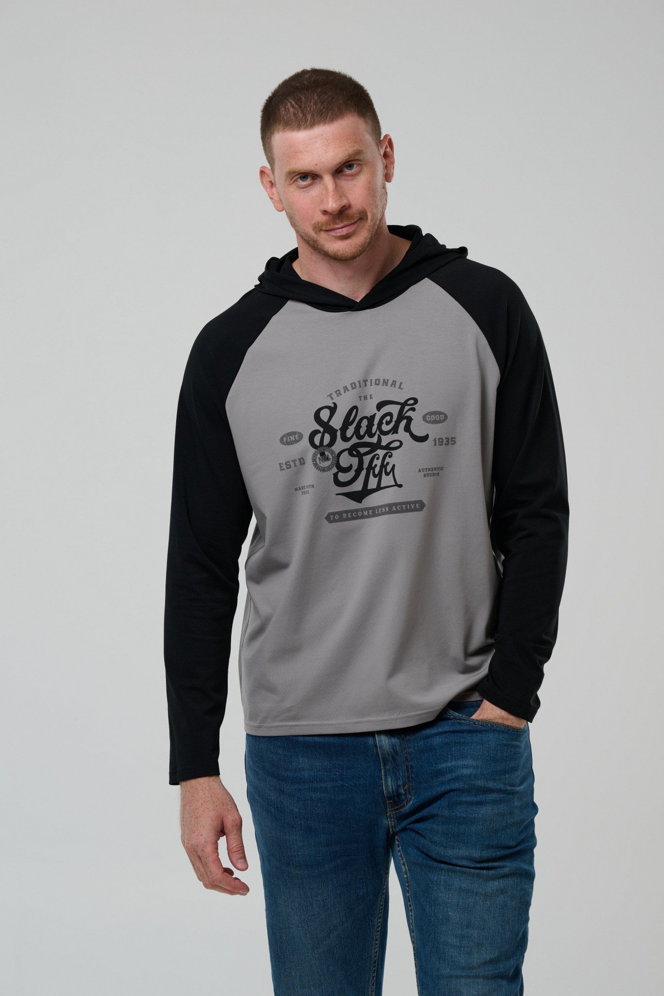 Стильный мужской лонгслив прямого силуэта из мягкого трикотажа (92% х/б, 8% ПЭ). Капюшон обеспечивает комфорт и тепло, а рукав реглан подчеркивает спортивный шик изделия. Изящно смотрится в любое время года. Сделано в России. Статус must-have Вашего гардероба!