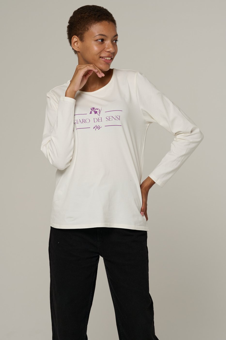 Нежный женский лонгслив белого цвета из мягкого трикотажа (92% х/б, 8% пэ). Прямой силуэт подчеркивает естественную красоту фигуры, а круглая горловина и классические втачные рукава придают изделию универсальность – идеален под джинсы или юбки. Стильный выбор от российского производителя!
