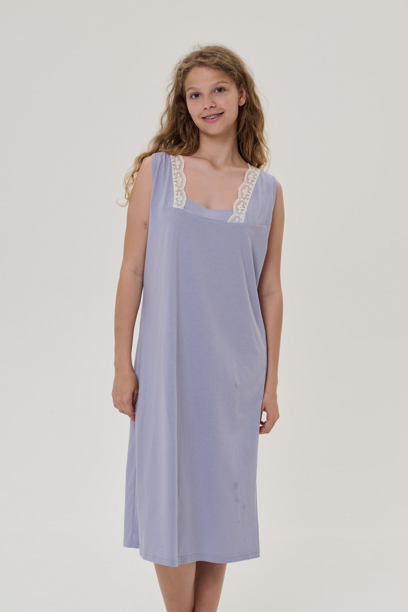 Погрузитесь в нежность и комфорт ночной сорочки российского производителя! Прямой силуэт подчеркивает естественную красоту фигуры, а глубокий V-образный вырез добавляет романтичности. Голубой оттенок дарит ощущение свежести и спокойствия – идеальный выбор для сладких сновидений.