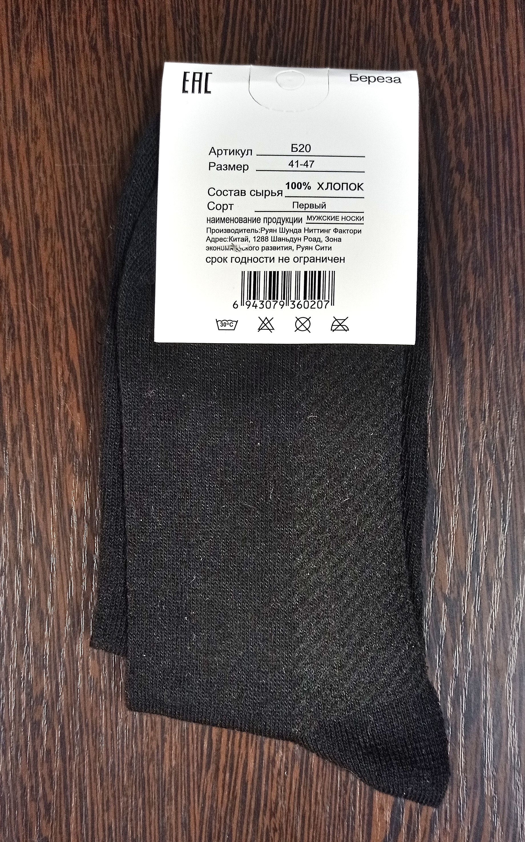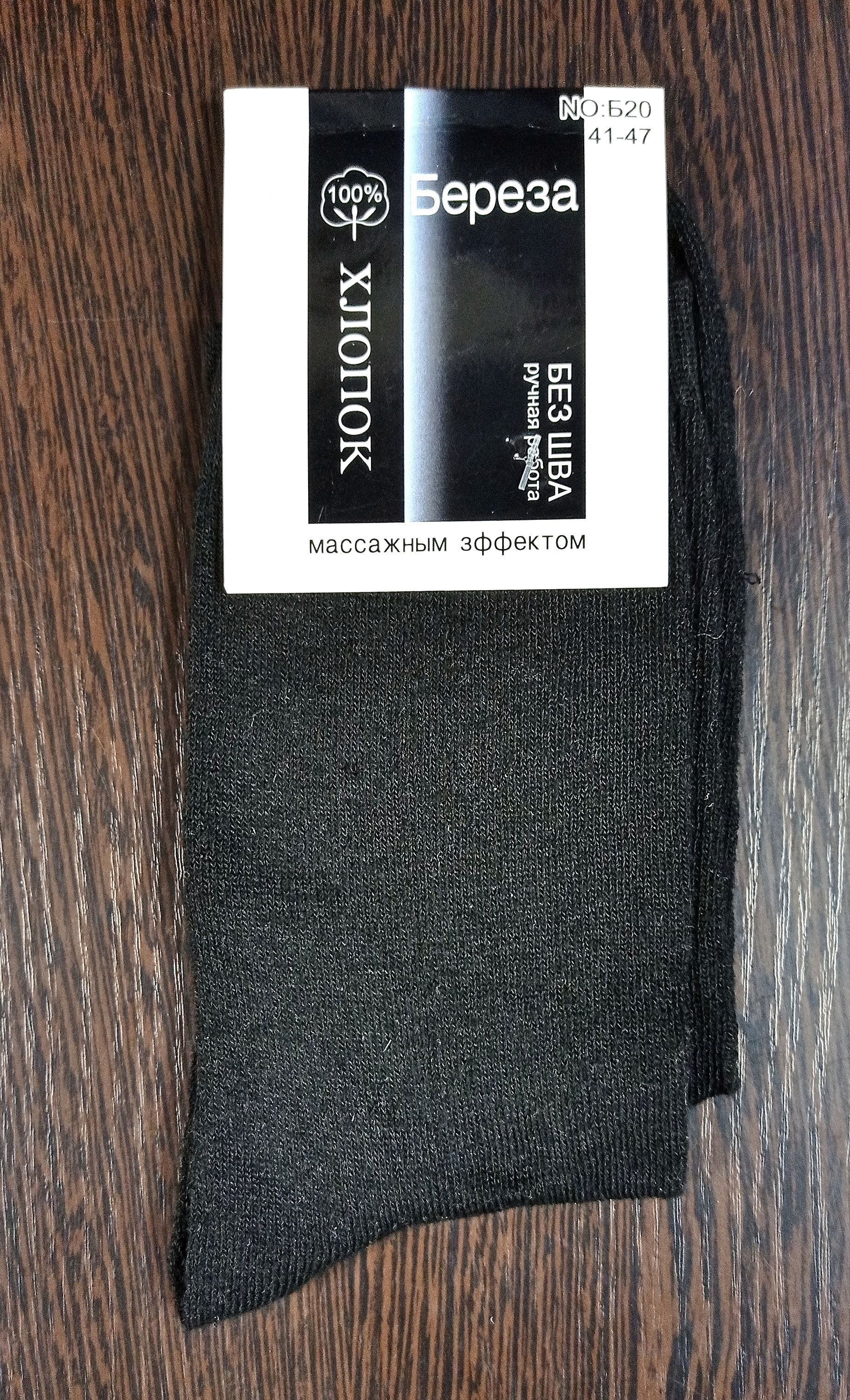 - 41 - 47, цвет чёрный: "Берёза", 100 % хлопок. Носки с массажным эффектом, без шва.