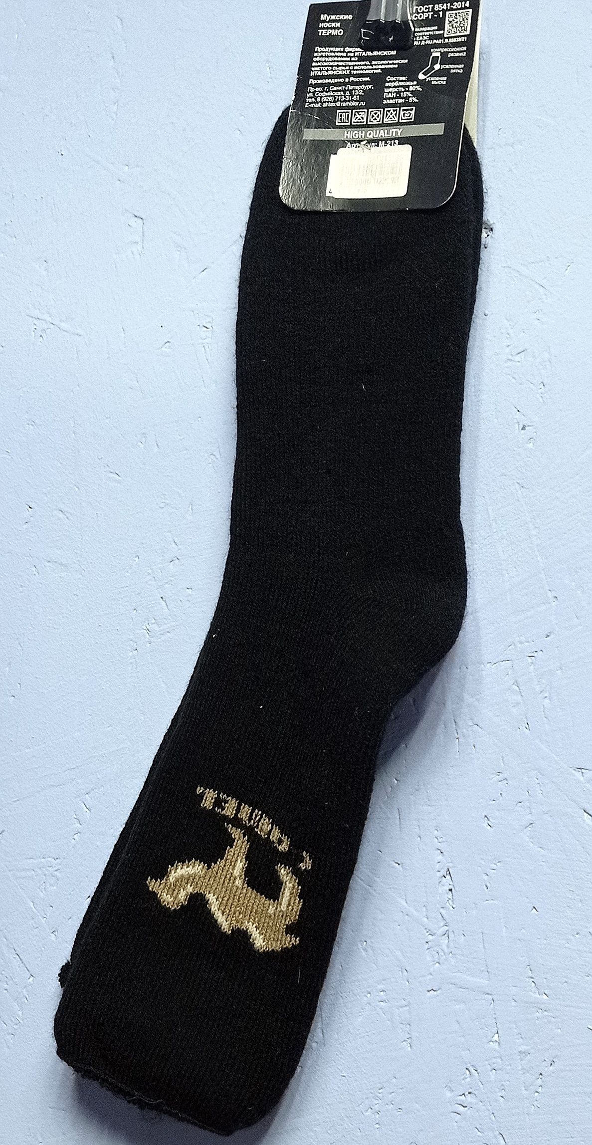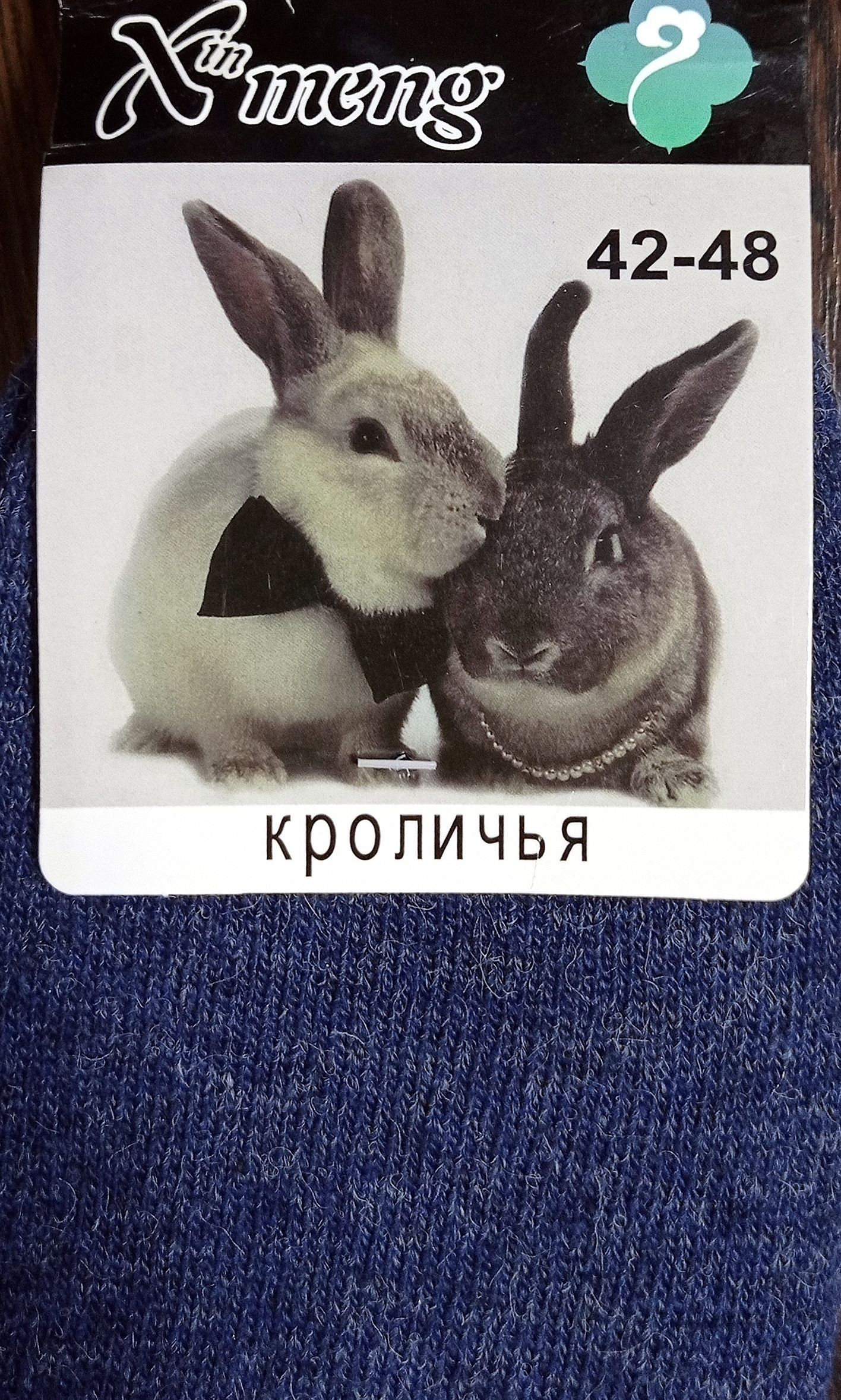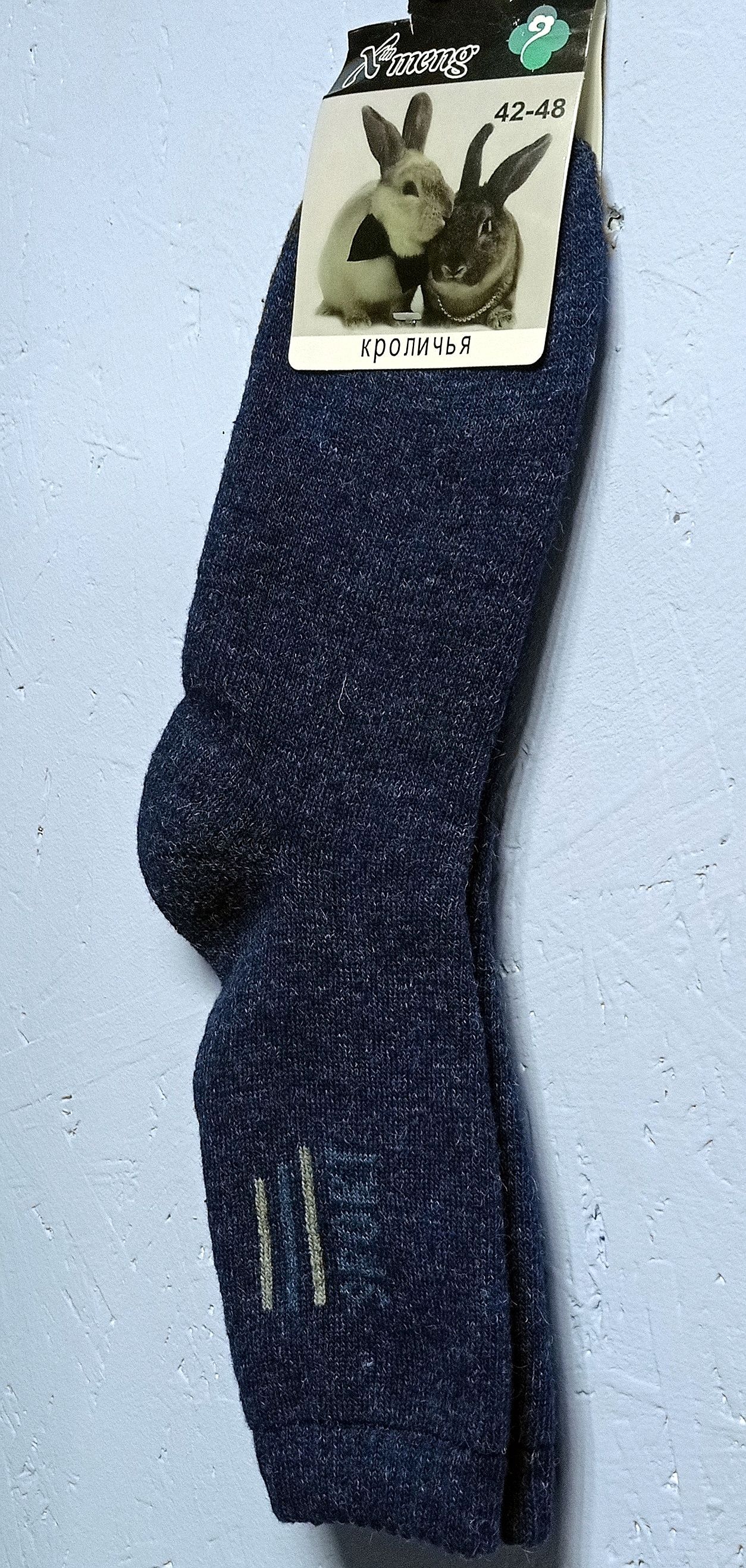 - 42 - 48, цвет синий с надписью "Sport": кроличья шерсть (80% кроличья шерсть, 15 % полиамид, 5% лайкра).