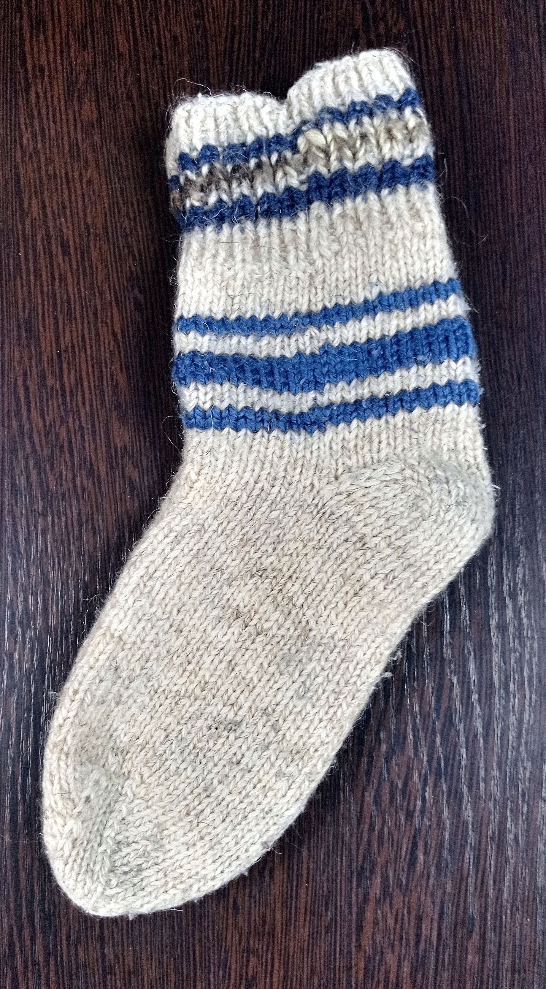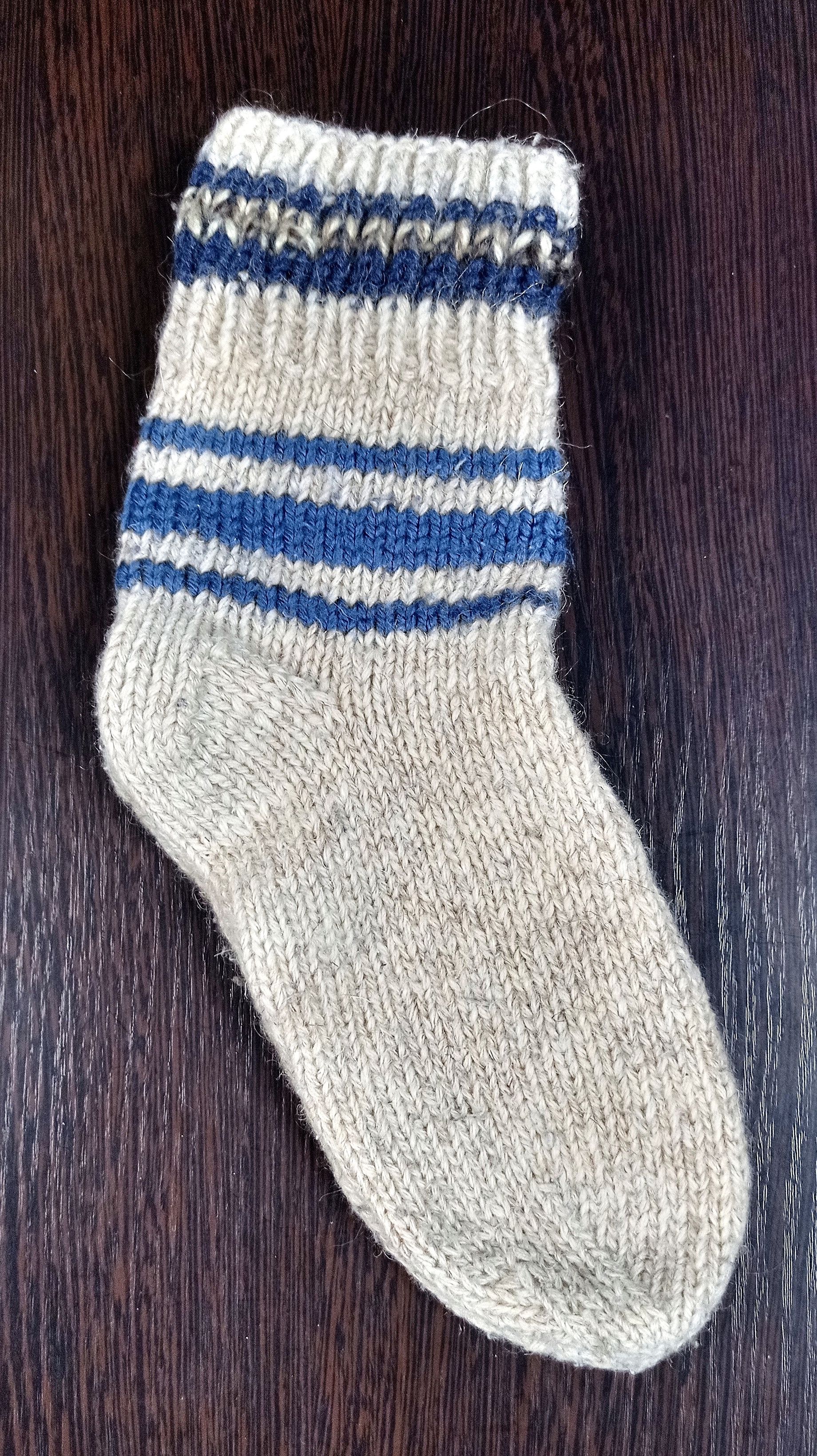 - 40, цвет светло-серый (с синими полосками): шерсть, вязка.