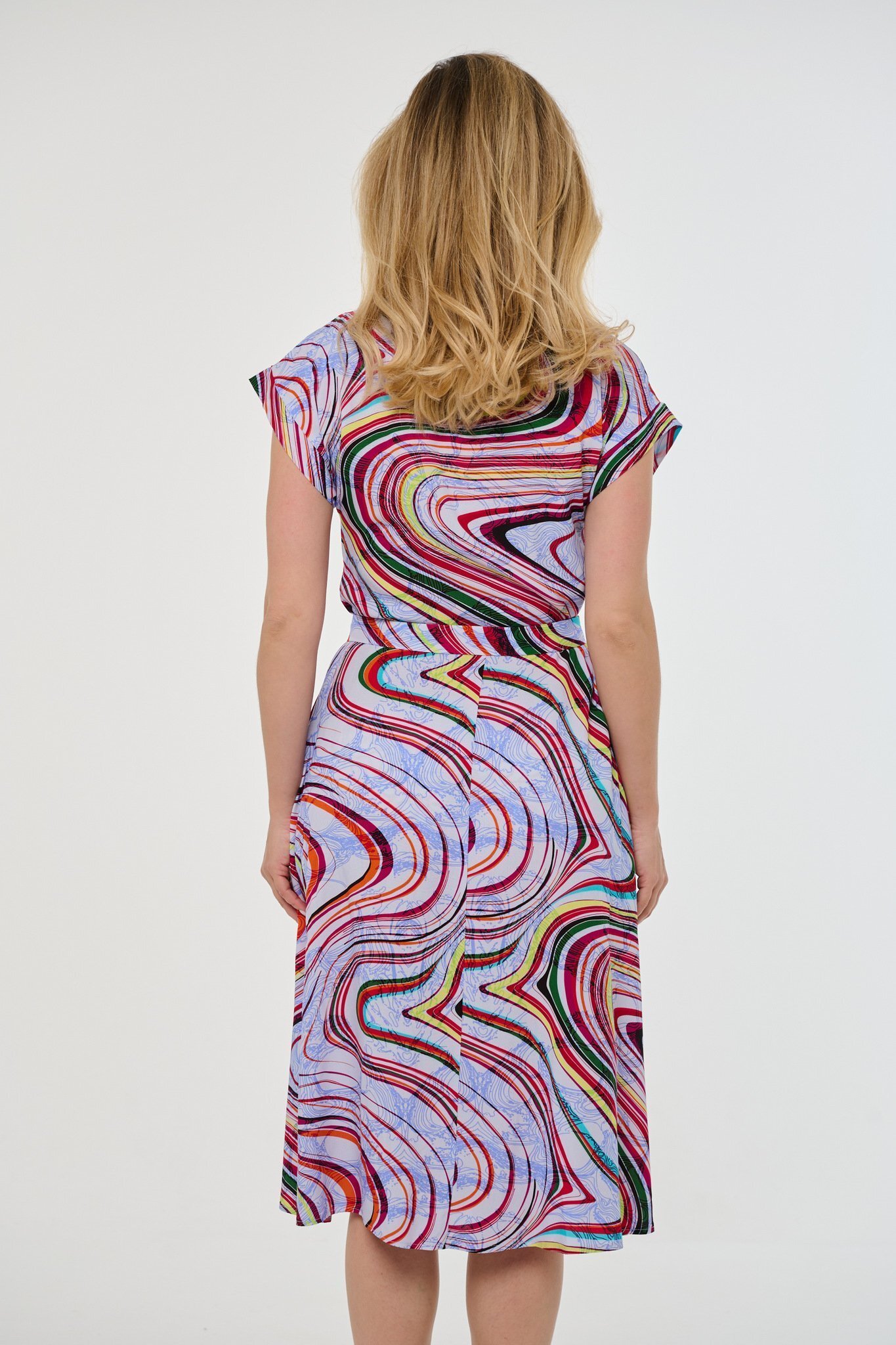 Изящное платье из нежнейшей вискозы — идеальный выбор для теплых весенних и летних дней! Эластичный материал подчеркивает фигуру, а стильный ремень позволяет акцентировать талию. Удобство, комфорт и безупречный внешний вид сочетаются в этом универсальном наряде, который станет жемчужиной Вашего гардероба. Изделие выполнено в России, отличается высоким качеством исполнения и привлекательным цветным дизайном.
