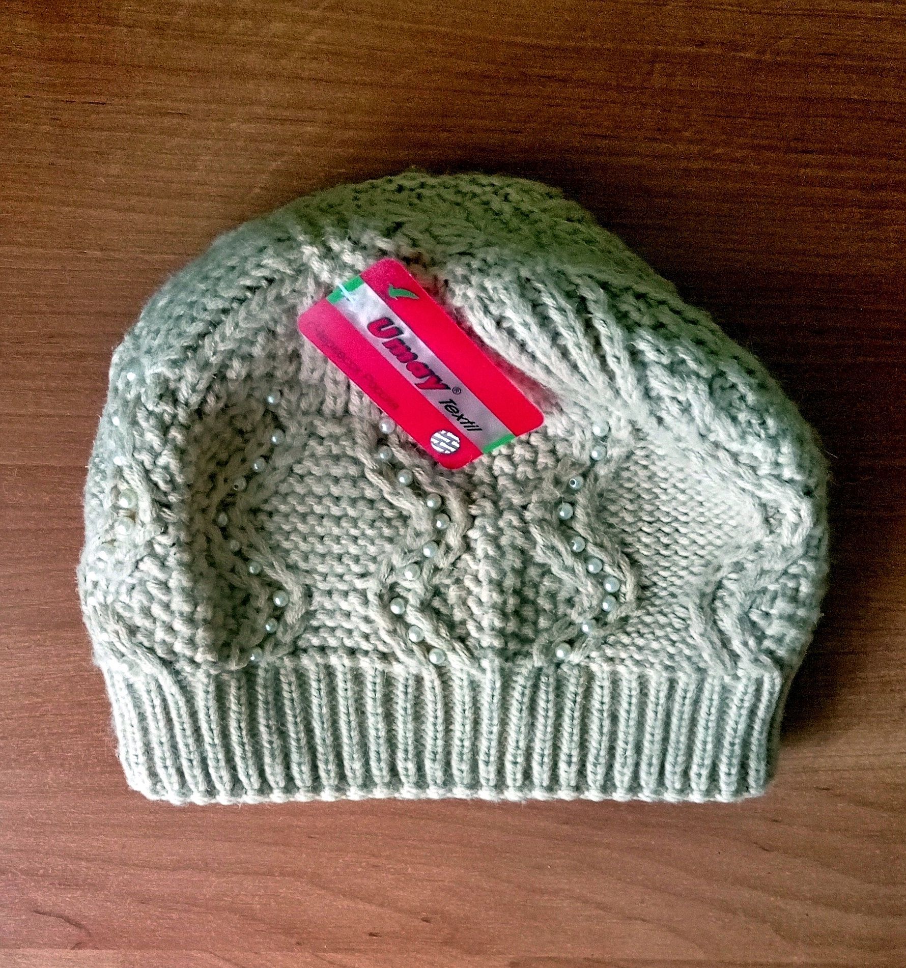 Набор зимняя женская шерстяная шапка и шарф, цвет охра.