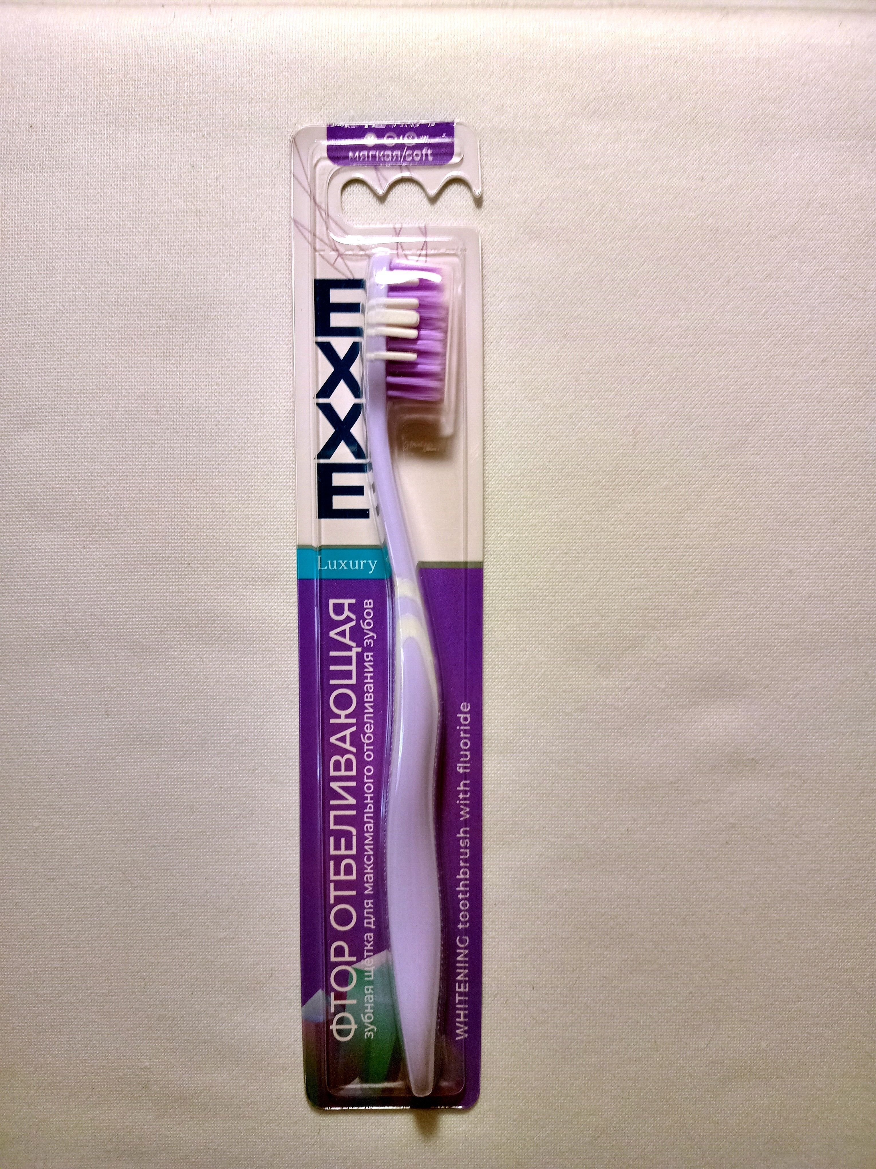 Зубная щётка "Exxe Фтор Отбеливающая", мягкая жесткость, цвет светло-сиреневый с белыми вставками.